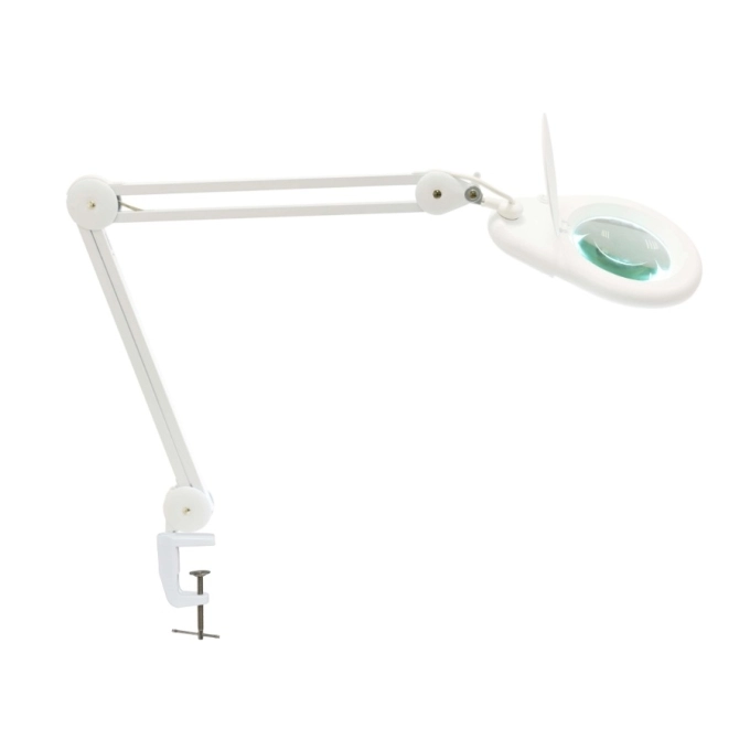 A Lupa de Bancada Led HL-400 possui um design Slim e Moderno. Contem 60 lâmpadas LEDs de alto brilho para uma iluminação de qualidade e econômica, uma lente de vidro com diâmetro de 127mm proporciona uma visualização ampla, focando tanto no centro como nas laterais sem perder a qualidade do foco. Seu braço articulado com 3 eixos de movimentação, com molas embutidas e suporte de fixação garantem mobilidade e segurança conforme a necessidade do operador. A Lupa de Bancada HL-400 possui tampa de proteção e é ideal para visualização reparos em circuitos elétricos, trabalhos de artesanatos, soldagens entre outras aplicações.