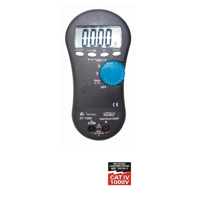 O instrumento mais seguro de nossa linha de multímetros, com design robusto e com apenas 2 entradas para evitar erros de conexão. Instrumento ideal para indústrias que necessitam de alta segurança em suas medidas de Tensão, com a função AutoCheck™ o instrumento realizá medidas automaticamente sem a necessidade de selecionar a unidade e faixa desejada, assim diminuindo os riscos de danos por seleção inadequada de grandeza elétrica.