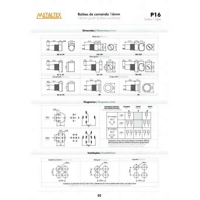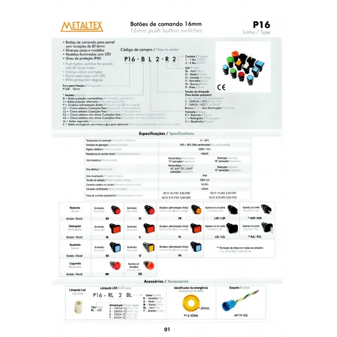 SINALEIRO RETANGULAR  LED 16MM   24VCC/CA - VERMELHO ( P16-PL7-R ) Mais detalhes