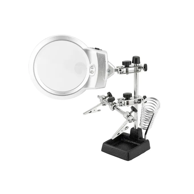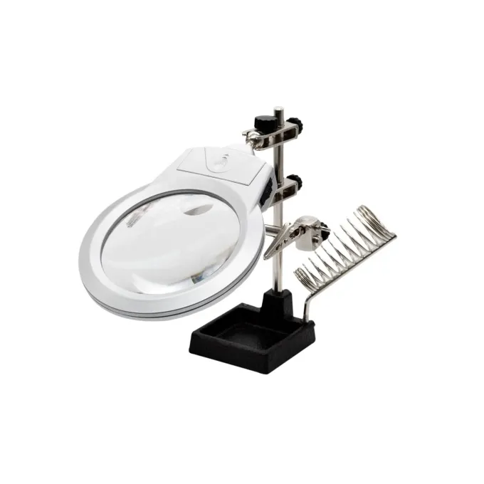 SOLVER - SUPORTE DE FERRO DE SOLDA COM LUPA LED - SLP-100
